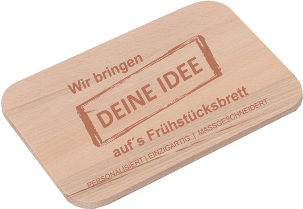 Unsere Frühstücksbrettchen sorgen für einen guten Start in den Tag. Mit deinem individuellen Design erinnert es dich an schöne Momente oder entlockt dir das morgentliche Lächeln.