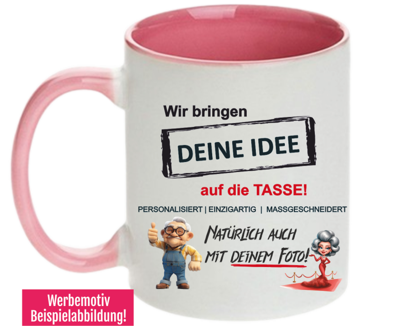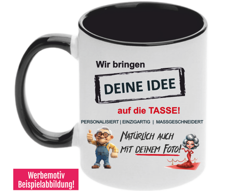 Gestalten Sie Ihre Tasse ganz nach Ihren Wünschen – ob mit einem inspirierenden Spruch, einem lustigen Bild oder Ihrem eigenen Design. Perfekt für den täglichen Gebrauch, als Geschenk für Freunde und Familie oder als kreatives Accessoire für Ihr Büro.
